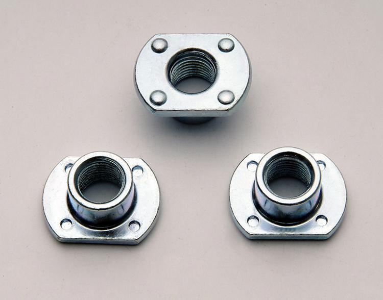焊接螺母強度比較大,且使用范圍廣,薄厚都可以,但是由于高溫會導致被連接件變形,且不可拆卸,而且一些活潑金屬不能用通常方法焊接,比如鋁,鎂等,需要保護氣或氬弧焊,要求加工工藝和精度。